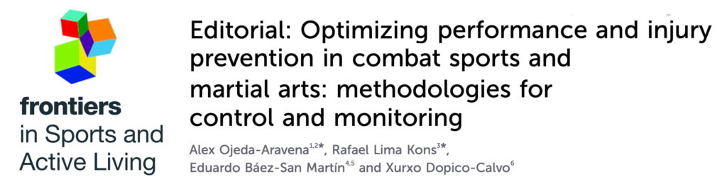 Ojeda-Aravena A, Kons RL, Báez-San Martín E, Dopico-Calvo X. Editorial: Optimizing performance and injury prevention in combat sports and martial arts: methodologies for control and monitoring. Front Sports Act Living. 2026 Mar 27;8:1824699.