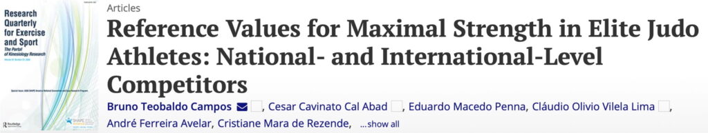 Campos BT, Abad CCC, Macedo Penna E, Lima COV, Avelar AF, Mara de Rezende C, da Silveira-Rodrigues JG, Prado LS. Reference Values for Maximal Strength in Elite Judo Athletes: National- and International-Level Competitors. Res Q Exerc Sport. 2026 Apr 17:1-10.
