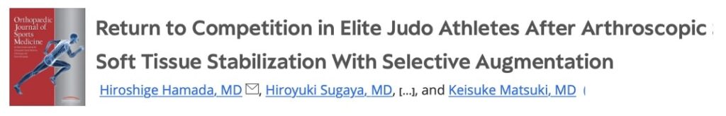 Hamada H, Sugaya H, Takahashi N, Tokai M, Matsuki K. Return to Competition in Elite Judo Athletes After Arthroscopic Soft Tissue Stabilization With Selective Augmentation. Orthop J Sports Med. 2025 Nov 14;13(11):23259671251385232.