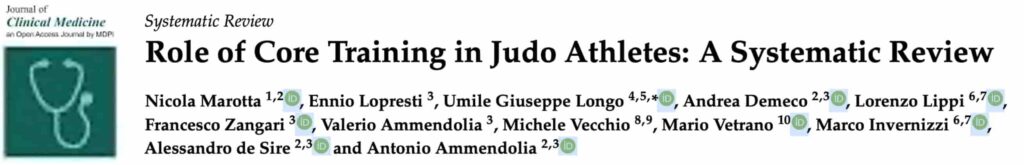 Marotta N, Lopresti E, Longo UG, Demeco A, Lippi L, Zangari F, Ammendolia V, Vecchio M, Vetrano M, Invernizzi M, de Sire A, Ammendolia A. Role of Core Training in Judo Athletes: A Systematic Review. J Clin Med. 2026 Mar 2;15(5):1897.